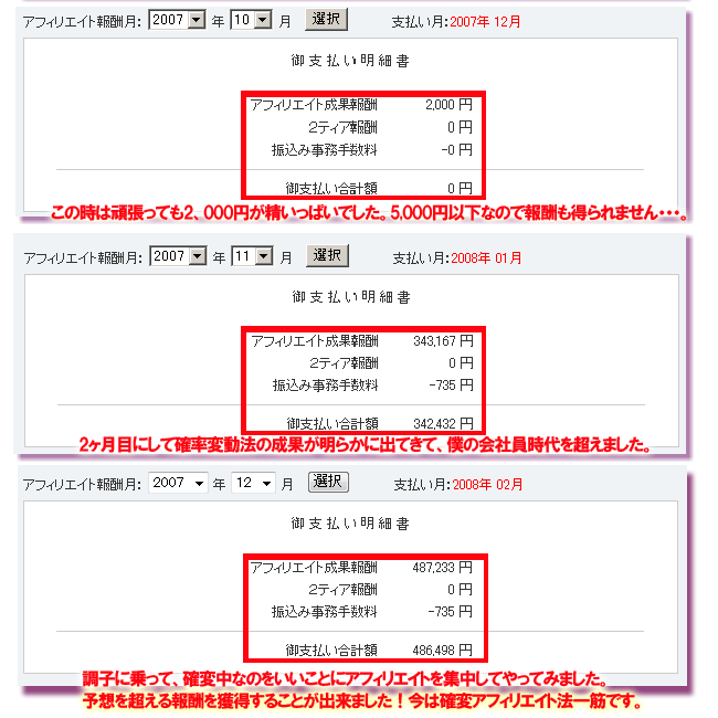 僕の場合は、アフィリエイト報酬が数ヶ月間で48万円。
