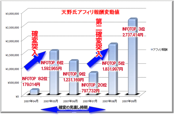 ちなみに情報商材も確変法を利用することによって、売上が100万円から350万円まで伸びる